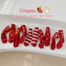 儿童袜子秋冬季男童大红新年袜龙年纯棉中筒袜女童中大童本命年袜
