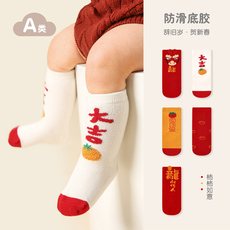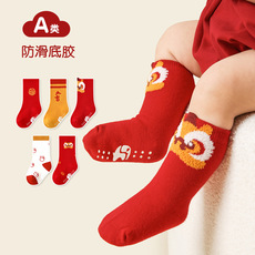 儿童袜子冬季红色新年款宝宝龙年中筒袜纯棉无骨新生儿防滑婴儿袜