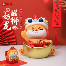 国潮醒狮小摆件创意办公室桌面Q版迷你舞狮手办装饰龙年送礼好物
