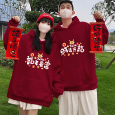 龙年本命年红色恭喜发财情侣装卫衣秋冬款2024新年款加绒加厚外套