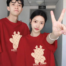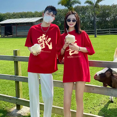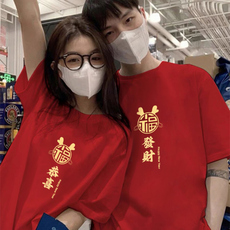 新年恭喜发财情侣装短袖2024新款春夏季龙年本命年红色纯棉T恤女