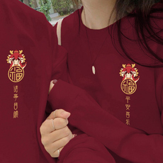 龙年本命年酒红色情侣装卫衣秋冬款2024特别的新年款潮牌圆领外套