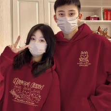 新年情侣装卫衣秋冬款2024新款龙年本命年酒红色衣服连帽加绒外套