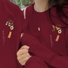 2024新年情侣装卫衣秋冬款本命年龙年圆领衣服酒红加绒春节拜年服