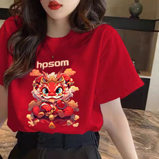 本命年龙年红色情侣装t恤秋冬款2024新款高级感春节拜年服短袖女